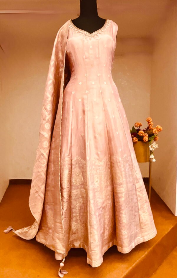 Elevate your ethnic wardrobe with this beautiful pink Anarkali gown and make every moment unforgettable.